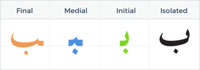 Ba is written differently when in the initial, medial, final, or isolated form as follows: